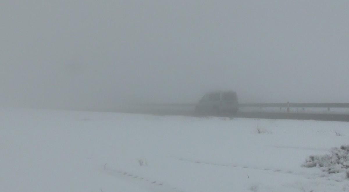 Kars-Digor-Iğdır karayolunun Hanlar Bölgesi’nde etkisini sürdüren ve görüş mesafesinin bazı bölgelerde 10 metreye kadar düştüğü kara yolunda trafik ekipleri, sürücüleri dikkatli olmaları konusunda uyarıyor.