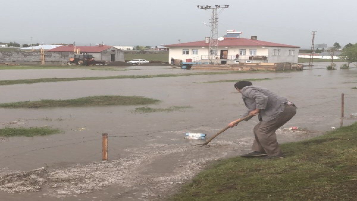 Yağmura hazırlıksız yakalanan köylüler ise su taşkınlarını önlemek için kanal girişlerini temizledi.