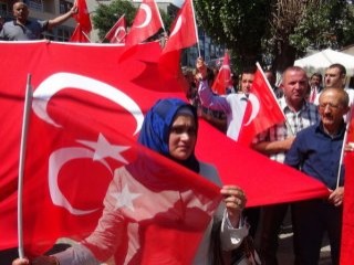 Türk Bayrakları ve sloganlar eşliğinde Kazımpaşa, Faikbey ve Gazi Ahmet Muhtar Paşa caddelerinde yürüyen Karslılar teröre lanet ederek 'Gazi Kars askerine ve polisine sahip çık' diye slogan attılar.