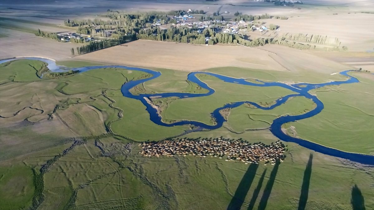 Kıvrım kıvrım akan mendereslerin oluşturduğu güzellikler, drone ile görüntülendi.