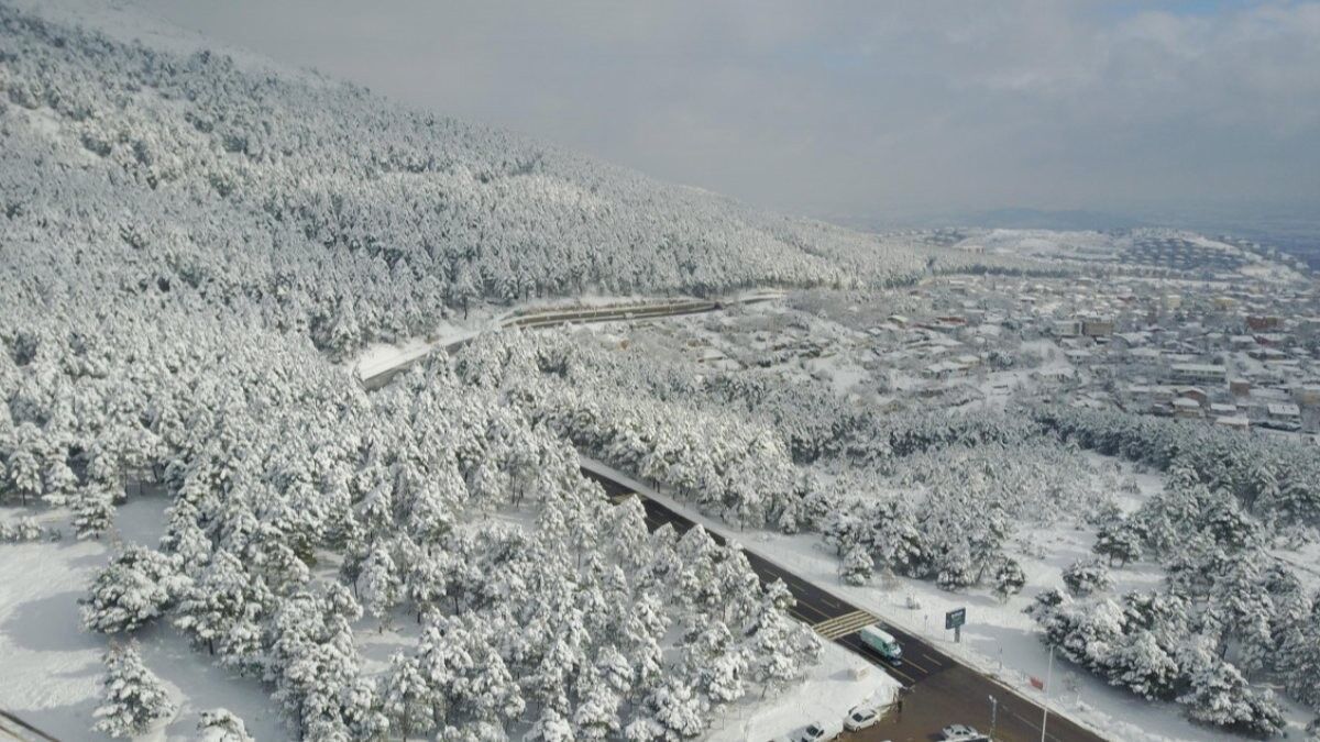 Binaların çatılarının beyaza bürünmesiyle Aydos Ormanı'nda kartpostallık görüntüler ortaya çıktı. Kar manzarası havadan görüntülendi.