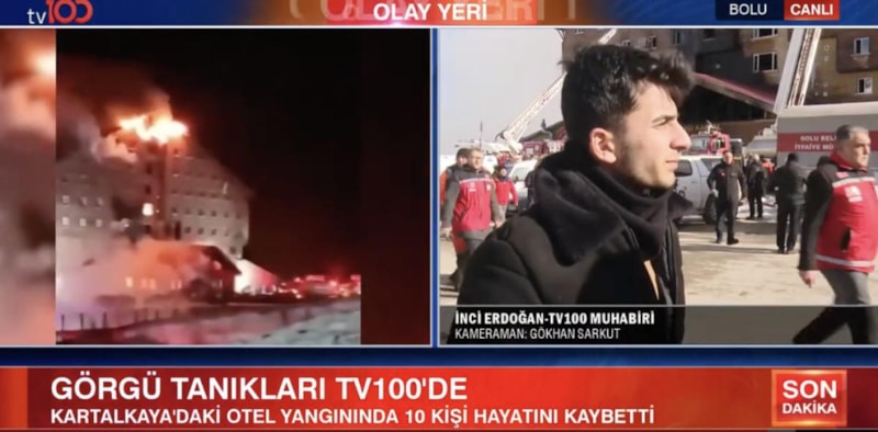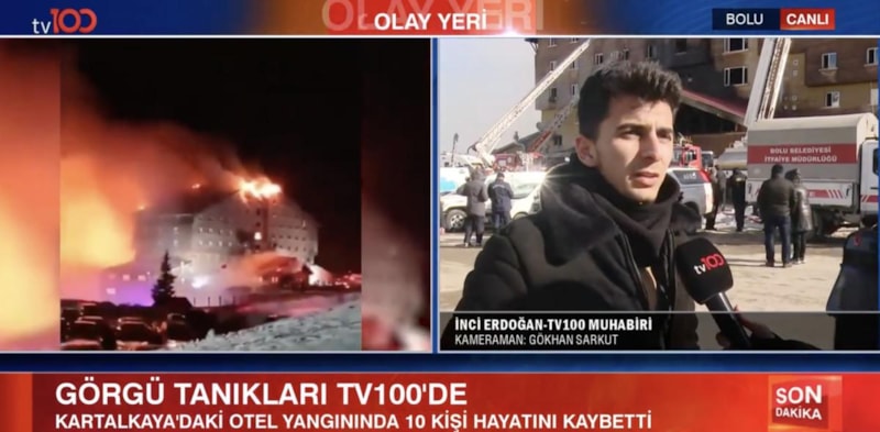 Yangına ve çalışmalara ilişkin gelişmeleri aktarmak için olay yerinde canlı yayın yapan TV100 ekibi, görgü tanıkları ile röportaj gerçekleştirdi.
