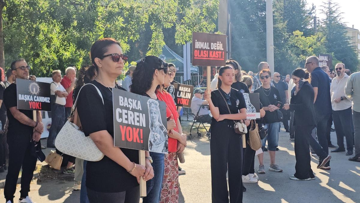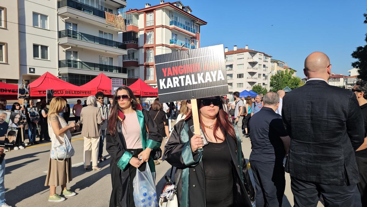 Davaya katılacak olanlar polis kontrol noktasından geçirildikten sonra alana alınıyor. Çok sayıda vatandaşlar da ellerinde ‘Başka Ceren yok’, ‘İhmail değil, olası kast’, ‘Yangının adı Kartalkaya’, ‘Hesap verilmeden yas tutulmaz’ yazılı dövizler taşıdı.