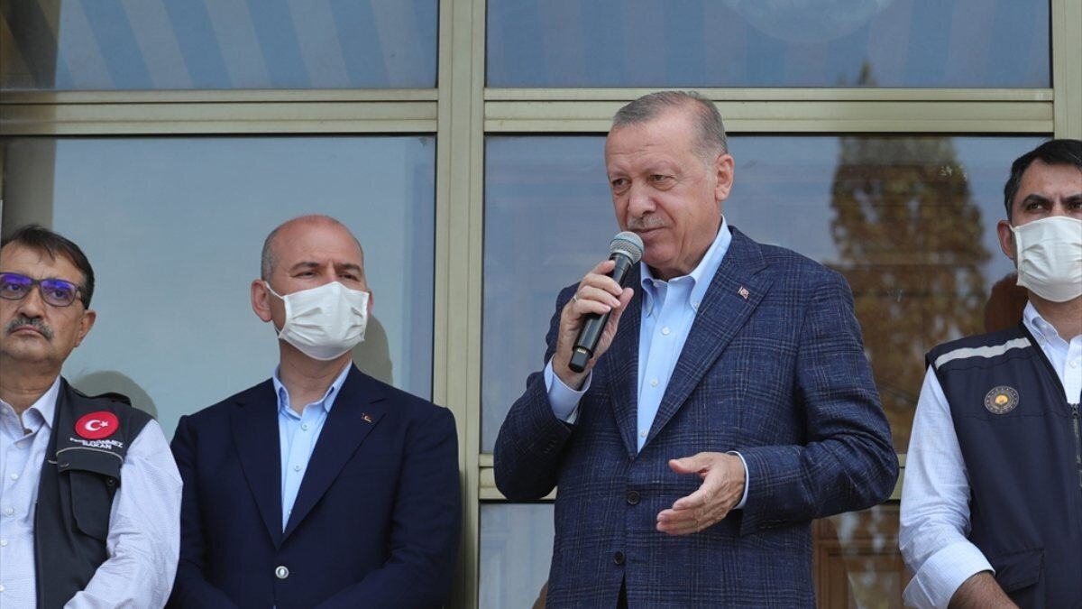 Erdoğan; Kastamonu, Bartın ve Sinop'ta selden etkilenen yerlerin "Genel Hayata Etkili Afet Bölgesi" ilan edildiğini açıkladı.