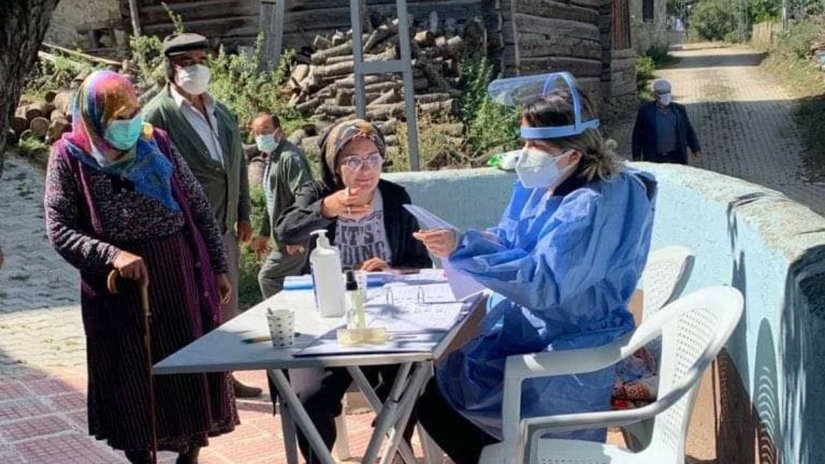 Daday Devlet Hastanesi görevlileri, köye gelerek aşı zamanı gelmiş vatandaşların eksik kalan aşılarını yaptı.