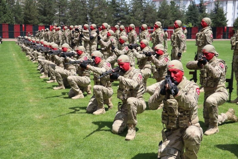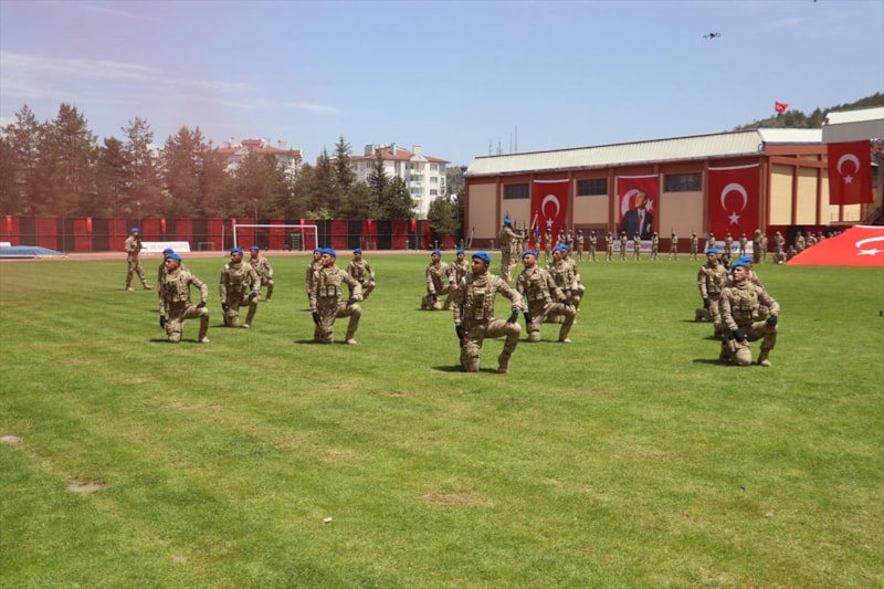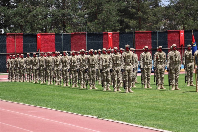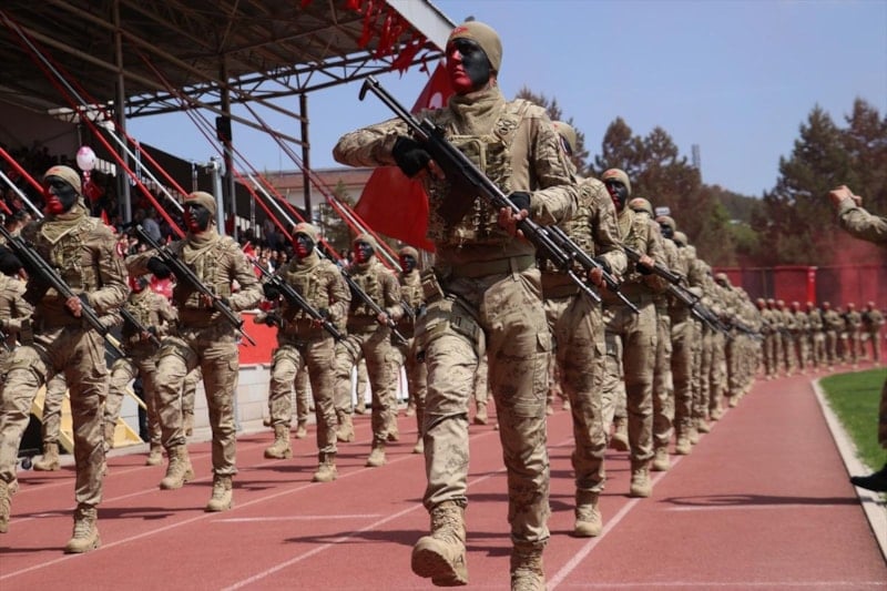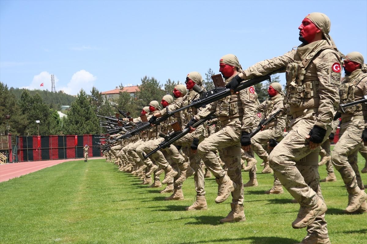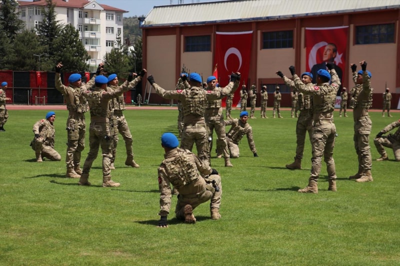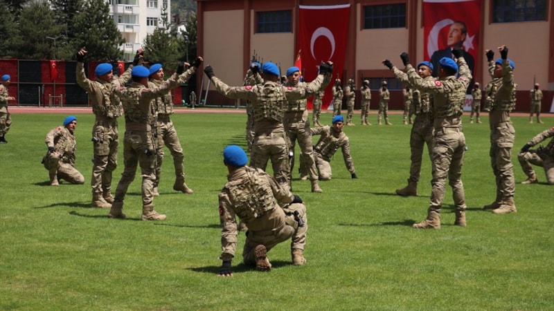 Komandolar, "Her Türk asker doğar", "Mustafa Kemal Atatürk", "Vatan sana canım feda", "Şehitler ölmez, vatan bölünmez" ve "Jandarma her zaman her yerde" diyerek silahlarıyla gösteri yaptı.