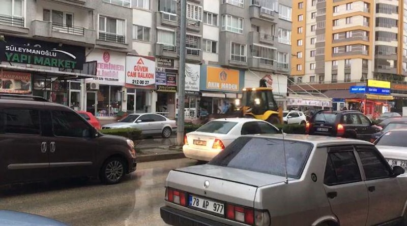 Meteorolojinin uyardığı Kastamonu’da etkili olan sağanak yağışın ardından cadde ve sokaklarda su birikintileri oluşurken vatandaşlar zor anlar yaşadı.