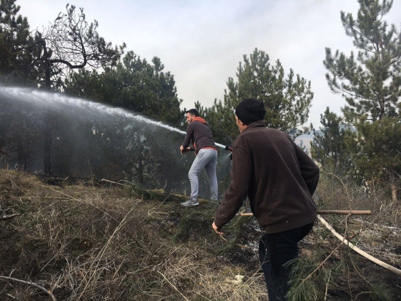 Ulaşımın zor olduğu bölgeye sevk edilen ekipler, kısa sürede alevlere müdahale etti. İtfaiye ve orman arazözleri olay yerine gelene kadar yangını polis ekipleri söndürmeye çalıştı.