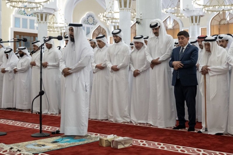 Katar Emiri Temim bin Hamed Al Sani, devlet yetkilileri ve Türkiye’nin Doha Büyükelçisiyle birlikte, görevleri sırasında Katar kara sularında düşen askeri helikopterde şehit olan Katarlı ve Türk askeri personeller için Doha’daki İmam Muhammed bin Abdülvahhab Camii’nde kılınan cenaze namazına katıldı.