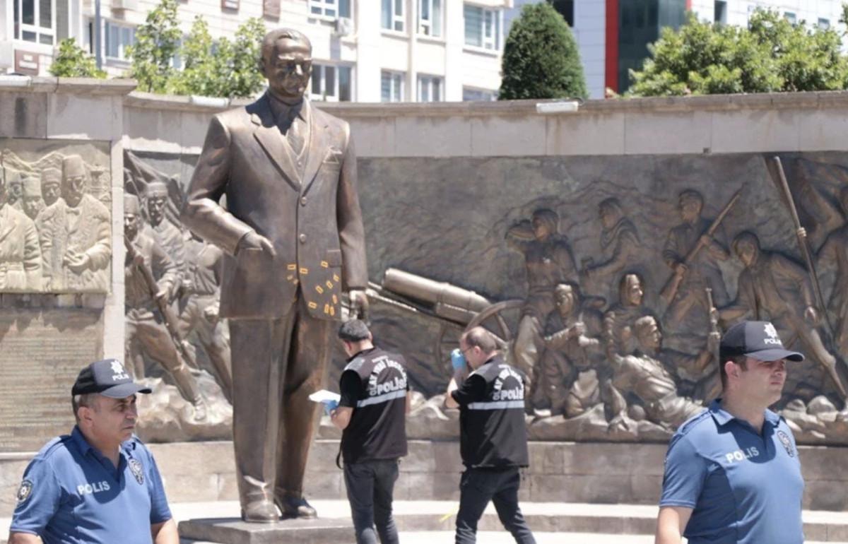 Ekiplerin yaptığı çalışma sonucu Atatürk Anıtı’nda 13 balta darbesi tespit edilirken, dayı-yeğen oldukları belirlenen 2 şüpheli gözaltına alındı.