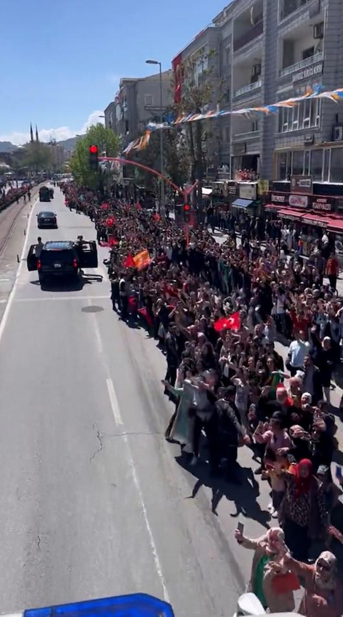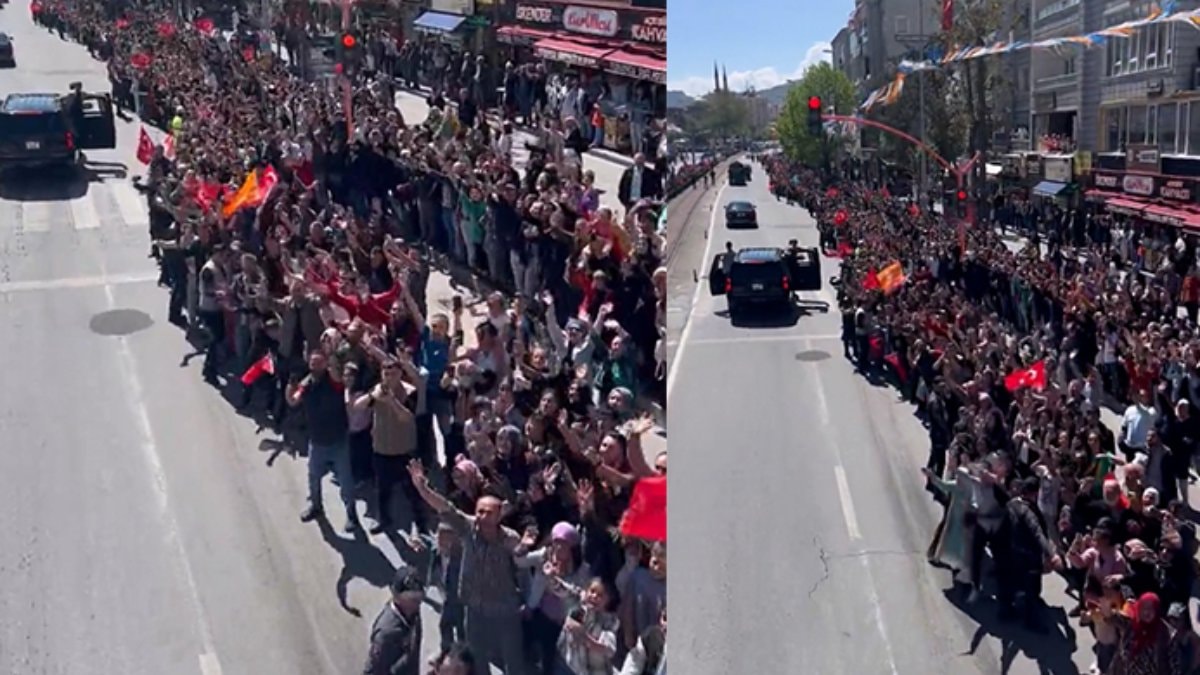 Meydanları dolduran binlerce kişi şehir merkezinden miting alanına gidene kadar Cumhurbaşkanı Erdoğan'ı yalnız bırakmadı..