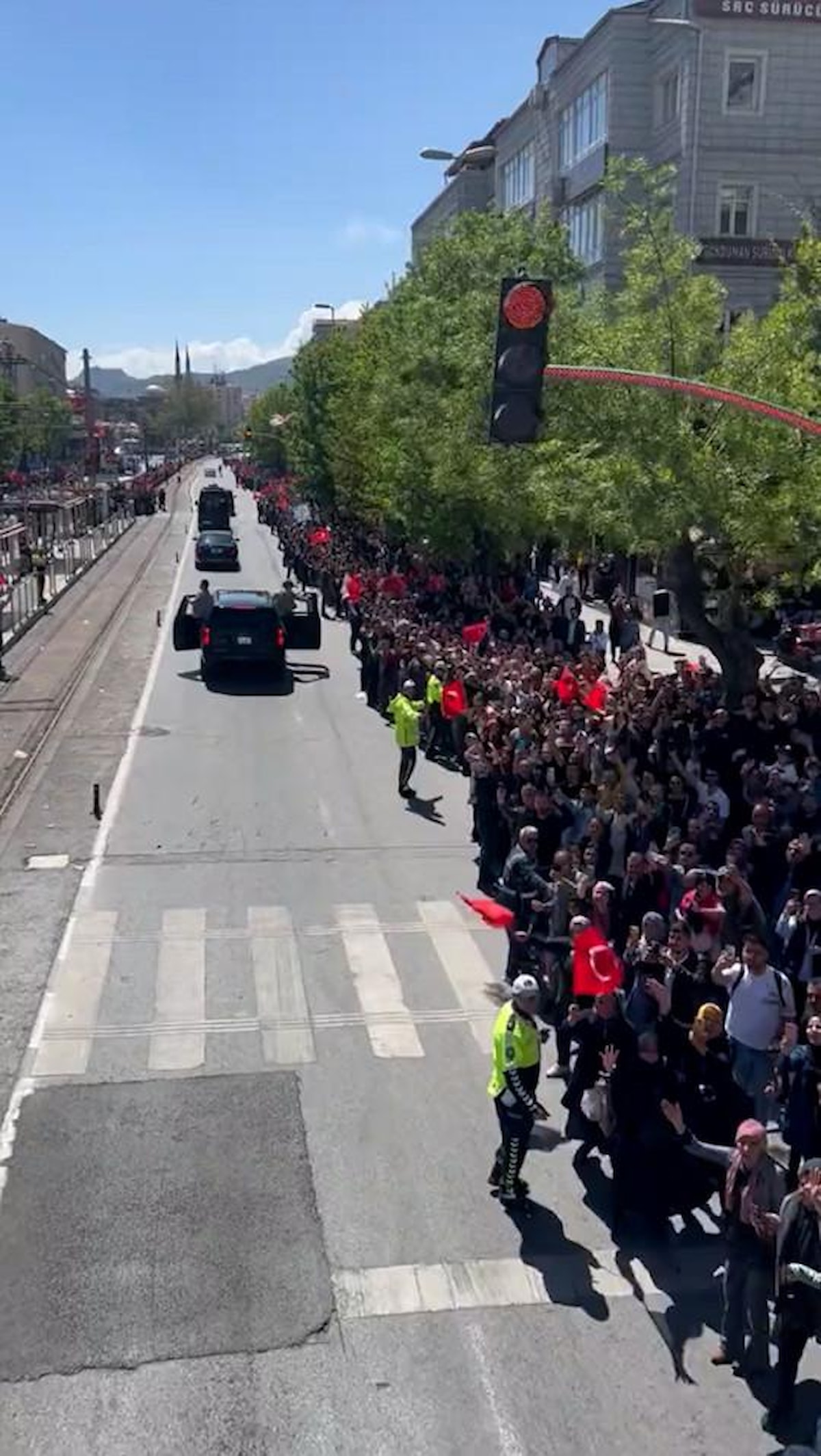 Kalabalık, cadde ve sokaklardan yollara taştı..