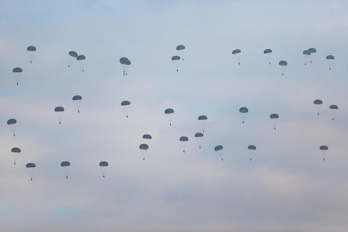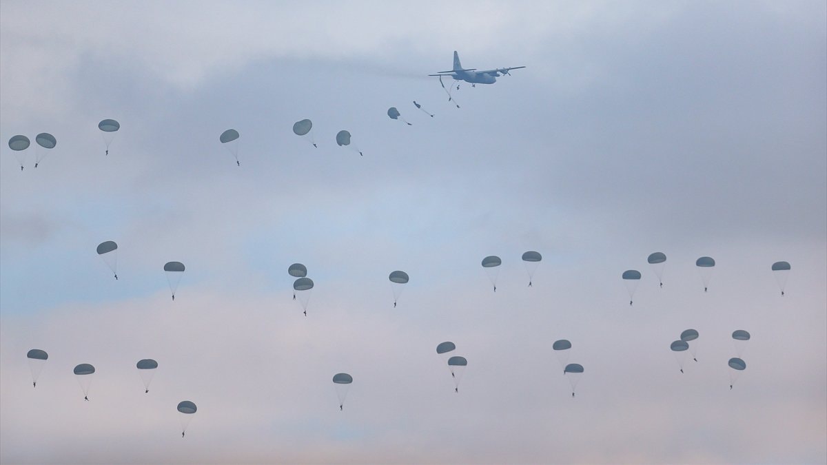 Tatbikat senaryosu kapsamında 12. Hava Ulaştırma Ana Üs Komutanlığı'ndan havalanan C-130 ve C-160 nakliye uçaklarındaki 180 paraşütçü komando, bölgeye indi.