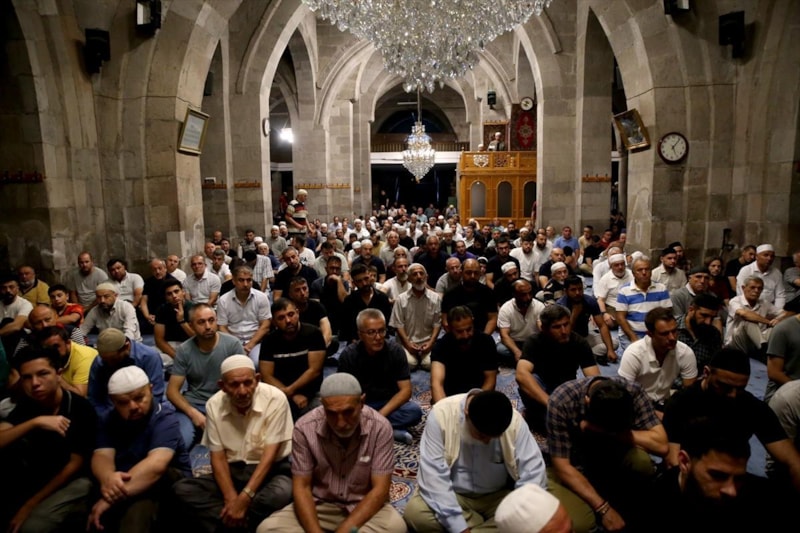 Tarihi Cami Kebir'e gelen gurbetçiler, sabah namazını kılıp, dua ettikten sonra Kur'an-ı Kerim tilaveti dinledi.