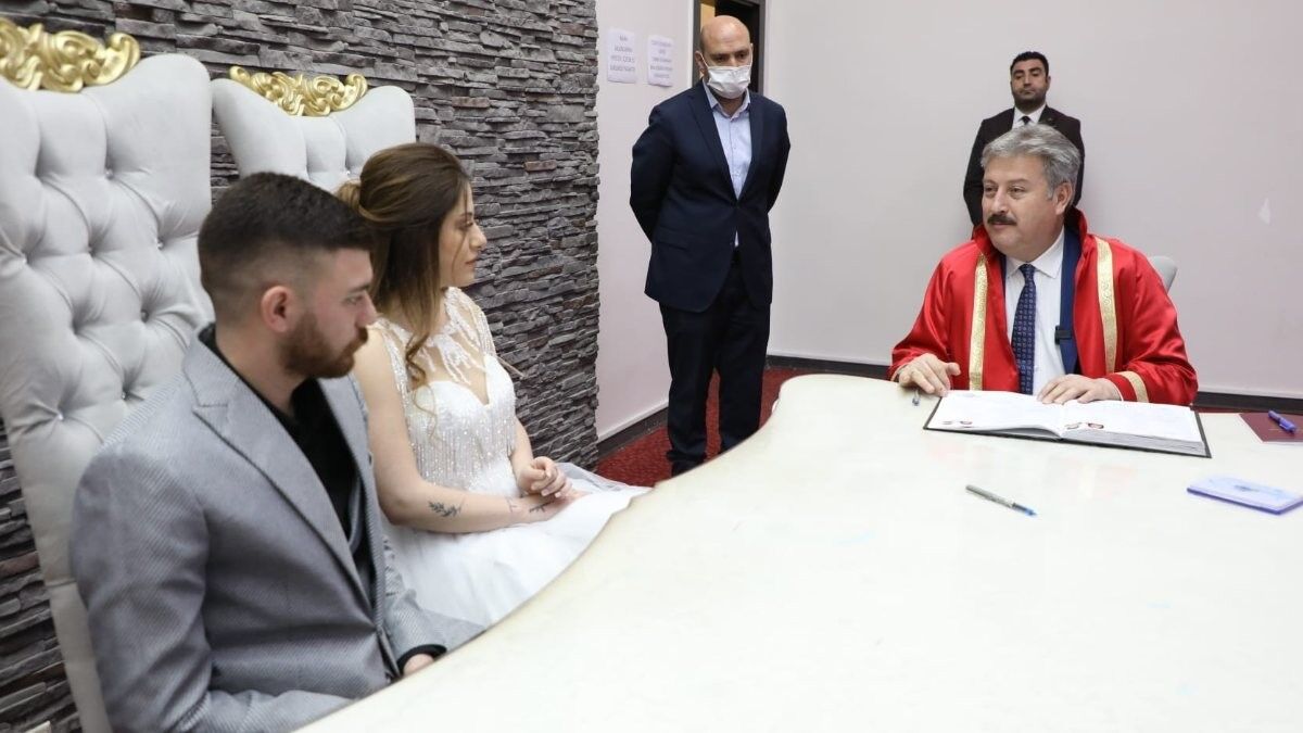 Kayseri'de özel tarihte evlenmek isteyen çiftler, nikah dairelerinde yoğunluk oluşturdu.