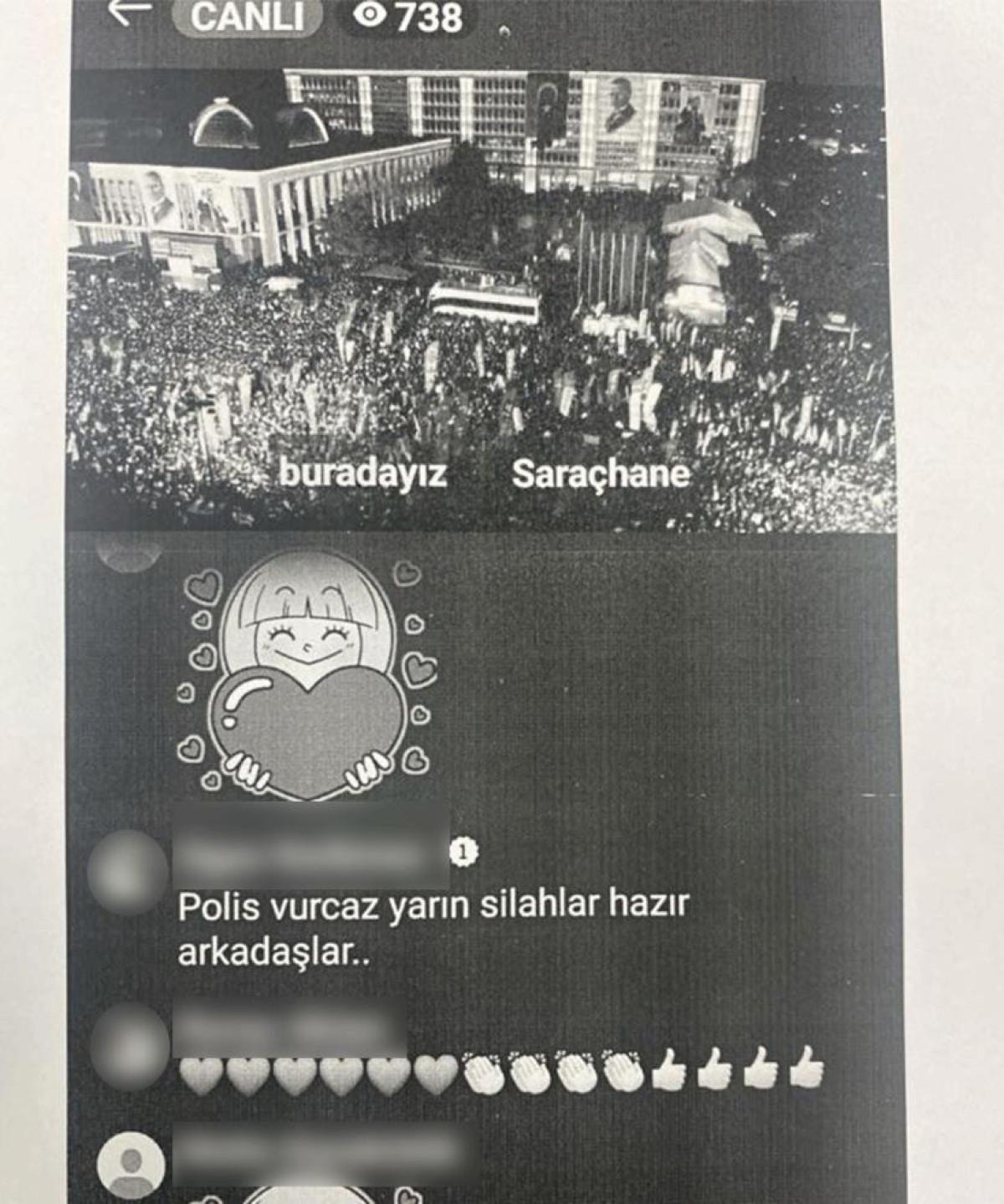 Yapılan çalışmalarda, "Polis vuracağız yarın, silahlar hazır arkadaşlar" şeklinde paylaşımda bulunan O.K. gözaltına alındı.