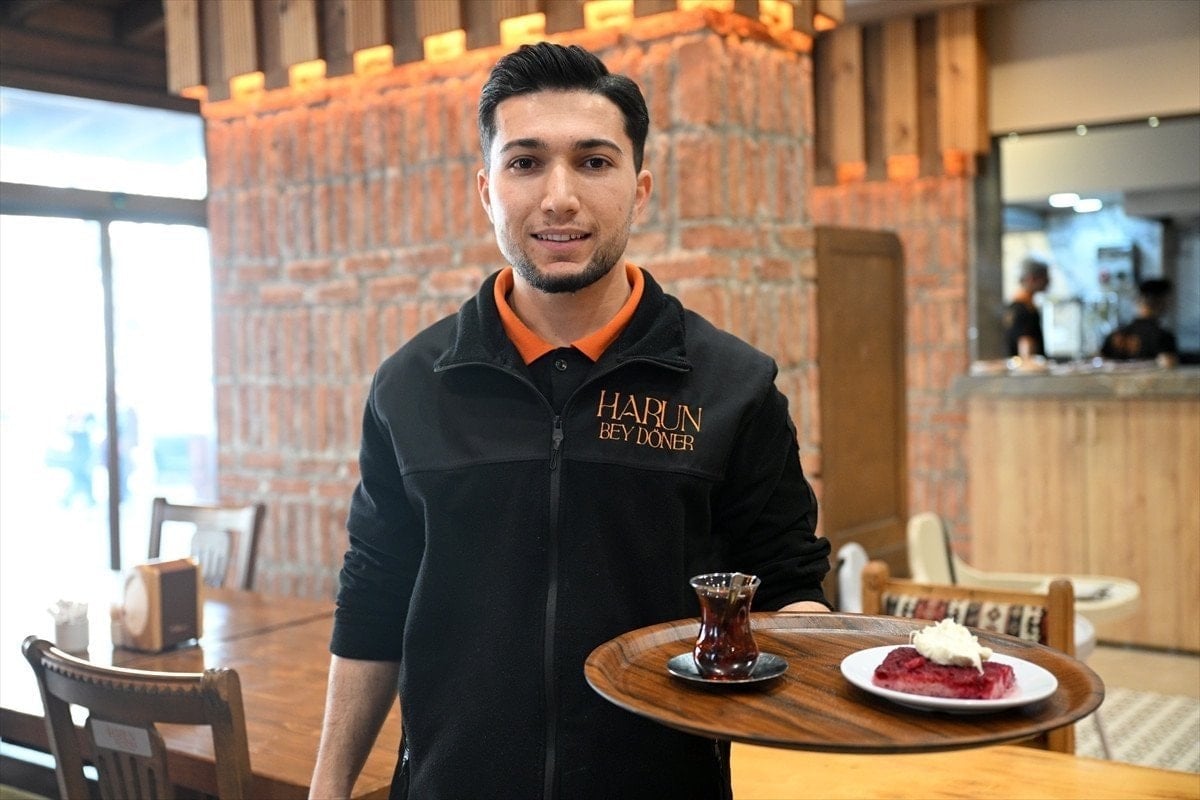 Erciyes Dağı'nda kayak yapmak için Kayseri'ye gelen bir turist aile, akşam yemeği için Muhammed Aytekin'in çalıştığı Melikgazi ilçesi Köşk Mahallesi'ndeki restorana geldi.