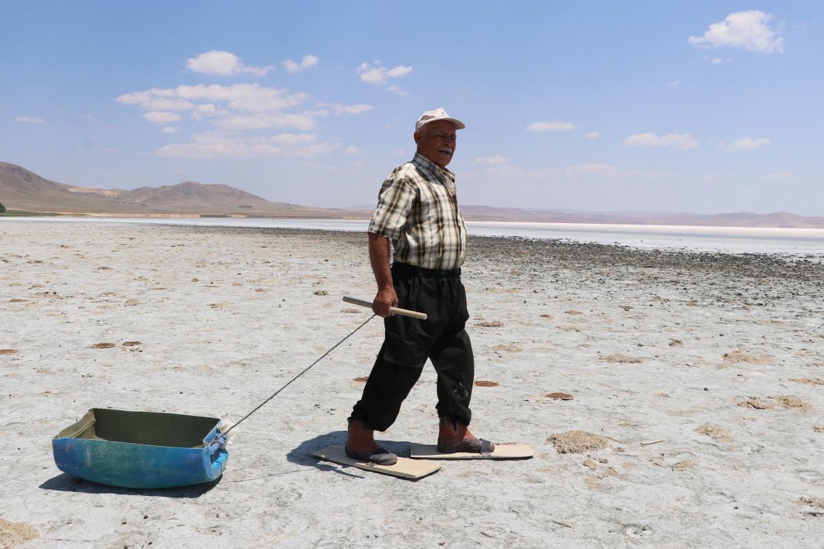 Yaşanan depremler sonrası son 2 yıldır gölde kuraklık ciddi anlamda arttı. Hem yağmurların az yağışı hem de sıcak havalar nedeniyle çok zorlanıyoruz. 30 yıldır buradan çıkardığım tuzları, köy köy gezerek satar geçimimi sağlardım. Bu gidişle tuz çıkaramadığım için maddi anlamda zorluk çekeceğim. Çamurun içinde debelenip duruyorum. Boşa gelip, boşa gidiyorum. Küreği boşa sallıyoruz. Allah nasip eder de yağmur yağarsa tuz olacak. Yağmur yağmazsa tuz olmayacak.