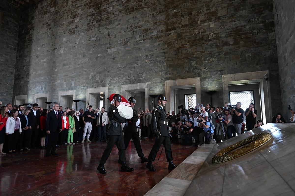 81 ilden gelen ve toplum her kesiminden oluşan 1922 kişiyle Anıtkabir'e giden Kemal Kılıçdaroğlu, Atatürk'ün mozolesine çelenk bıraktı.