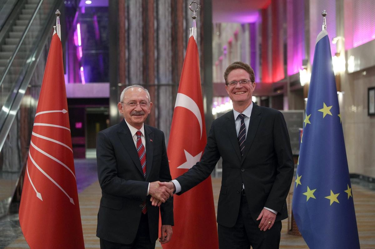 AB Türkiye Delegasyonu Başkanı Nikolaus Meyer-Landrut’un da katıldığı yemekte Kılıçdaroğlu’na, CHP Genel Sekreteri Selin Sayek Böke, Genel Başkan Yardımcısı ve Parti Sözcüsü Faik Öztrak, Genel Başkan Başdanışmanı Ünal Çeviköz, Kadın Kolları Genel Başkanı Aylin Nazlıaka ile AB Uyum Komisyonu üyesi Milletvekilleri Özkan Yalım, Türabi Kayan, Nurhayat Altaca Kayışoğlu ve Sibel Özdemir eşlik etti.