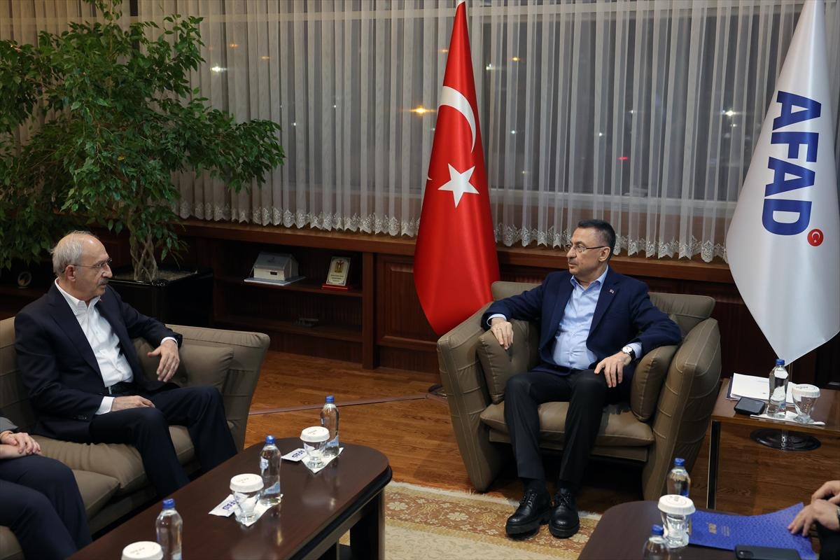 Kılıçdaroğlu, Cumhurbaşkanı Yardımcısı Fuat Oktay ve AFAD Başkanı Vali Yunus Sezer ile yaklaşık 40 dakika süren bir görüşme gerçekleştirdi.
