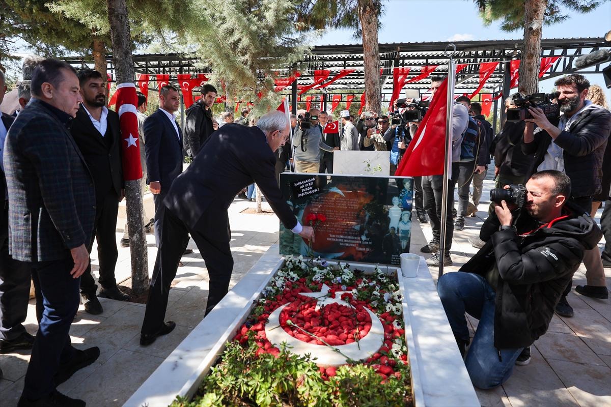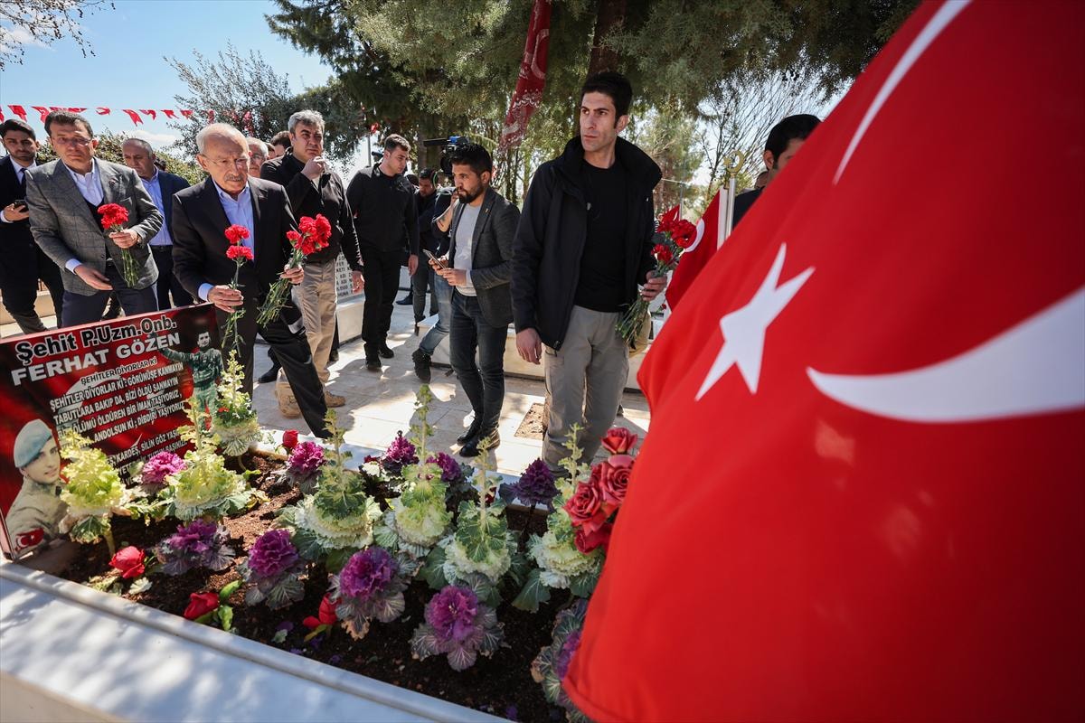 Depremlerde vefat edenlerin mezarlarını ziyaret eden Kılıçdaroğlu, Yeşilkent Şehitliği’ni de ziyaret etti.