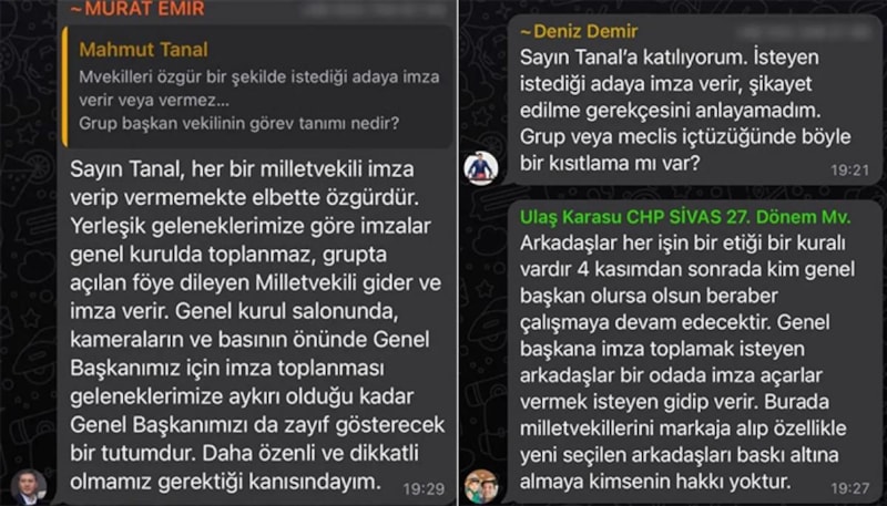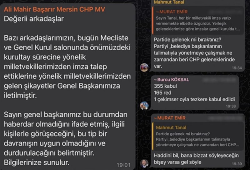 Tartışma, CHP milletvekillerinin olduğu WhatsApp grubuna taşındı.