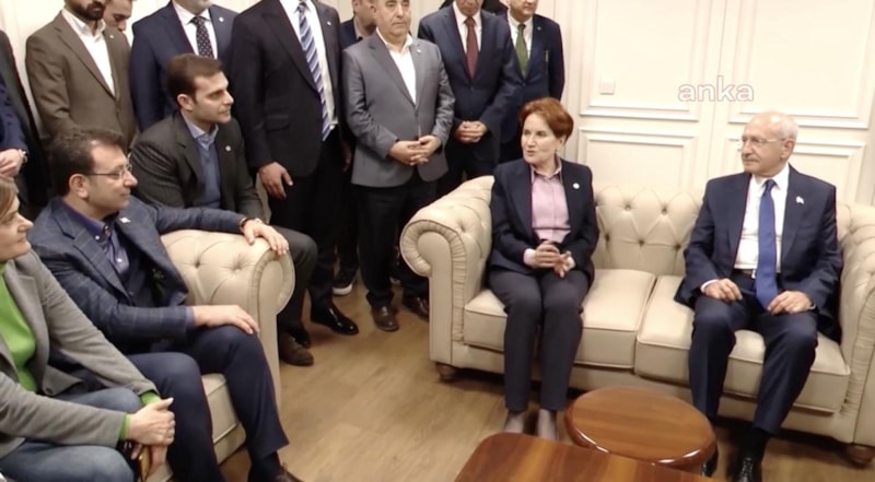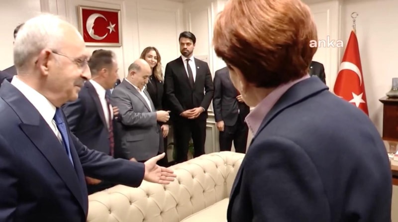 Kemal Kılıçdaroğlu'nu İyi Parti Genel Başkanı Meral Akşener ve İstanbul Büyükşehir Belediye Başkanı Ekrem İmamoğlu kapıda karşıladı.