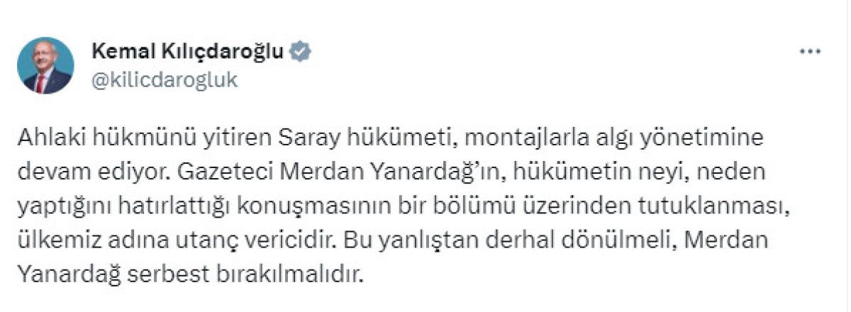 Konuya ilişkin sosyal medya hesabından açıklama yapan CHP Lideri Kemal Kılıçdaroğlu, Yanardağ’a sahip çıktı.