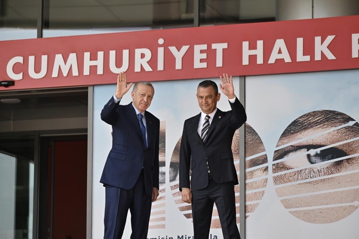 Cumhurbaşkanı Erdoğan da Özel'e teşekkür ederek CHP Genel Merkezi'ne doğru yöneldi.