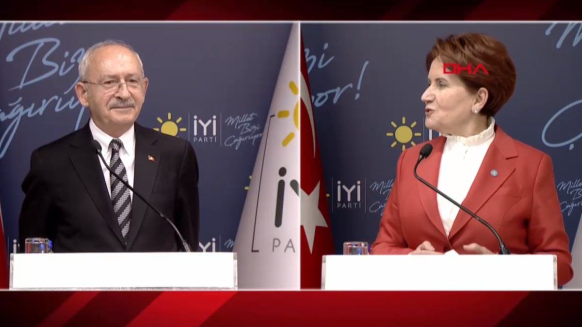 İyi Parti Lideri Meral Akşener'e ziyarette bulunan CHP Lideri Kemal Kılıçdaroğlu, "Ülkemizin insanını seven, sorunların kısa sürede çözülmesi için çaba harcamayı kendisine görev edinen bir siyasal anlayışla açık ve net çağrımzı yapıyoruz. Ülkeyi yönetemiyorsunuz. Yazıktır günahtır. Daha fazla savurmayın. Bir an önce seçime gidin. Yeni bir hükümet gelsin. Doğru dürüst bu ülke yönetilsin. Bu nedenle Sayın Genel Başkan ve arkadaşlarıyla görüştük. İyi Parti'nin de bizim de iyi bir ekonomi kurmayımız var. Gidişattan duyduğumuz endişeleri paylaştık." dedi.
