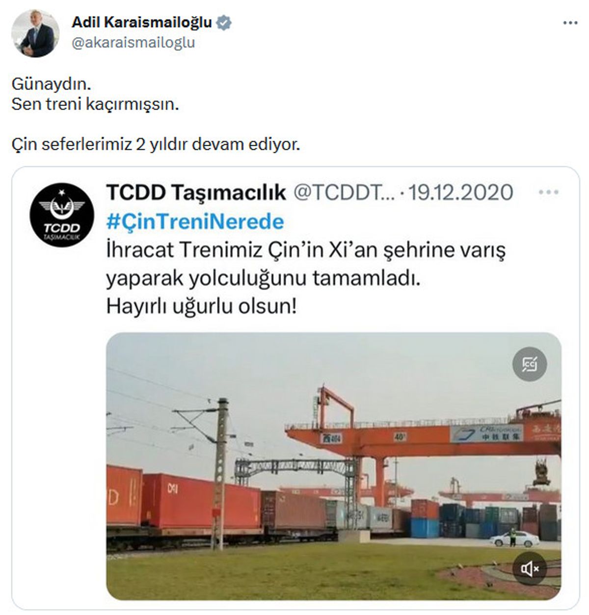2020 yılının sonunda Türkiye'den Çin'e giden ihracat treninin Halkalı'da durduğu iddiası muhalif medya tarafından dillendirilmişti.