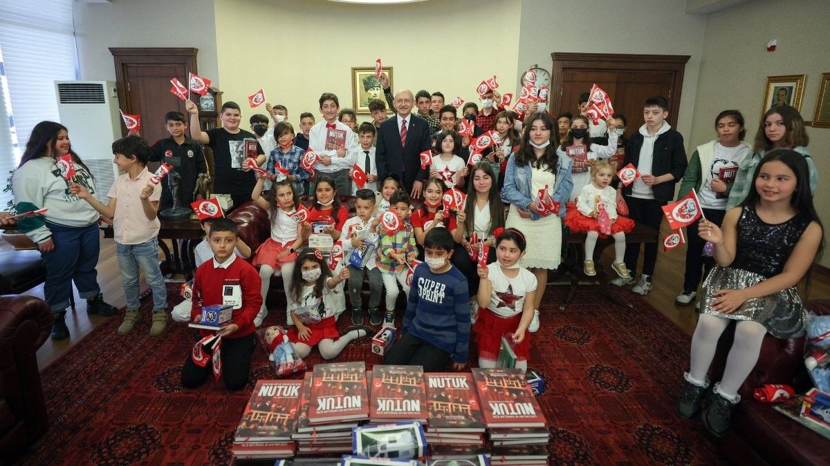 CHP Genel Başkanı Kemal Kılıçdaroğlu da Türkiye'nin farklı yerlerinden gelen kalabalık bir çocuk kafilesini kabul etti.