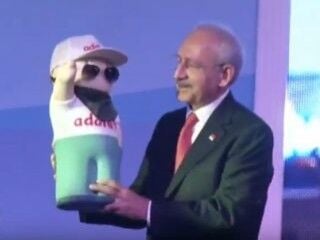 Sık sık "heykel" hediyeleri alan Kılıçdaroğlu'na bu kez kukla hediye edildi.