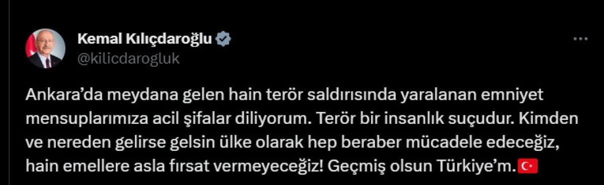 Yaşanan sürecin ardından terörü lanetleyen mesajlardan birisi de CHP Genel Başkanı Kemal Kılıçdaroğlu'ndan geldi.