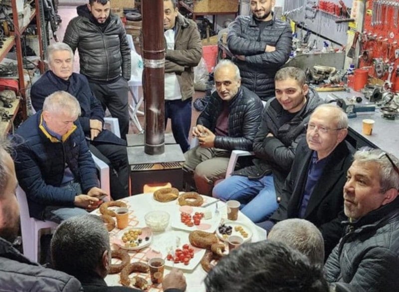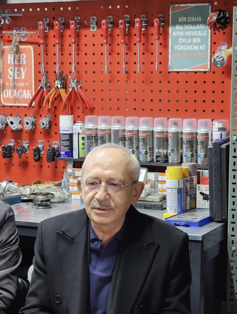 Sanayi sitesinde bulunan hurdacı esnafıyla kahvaltıda buluşan Kılıçdaroğlu'na, yakınındaki isimlerden Bülent Kuşoğlu da eşlik etti.