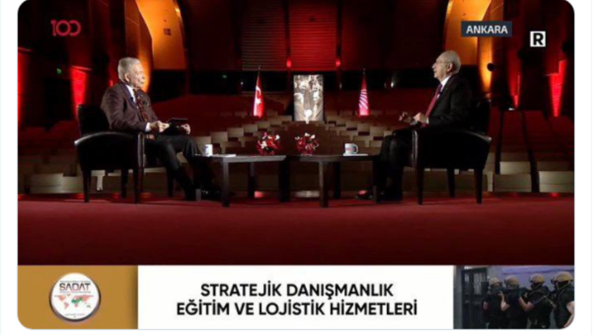 Program sırasında Kılıçdaroğlu'nun daha önce kapısının önüne giderek hakkında iddialarda bulunduğu SADAT'ın reklamı yayınlandı.