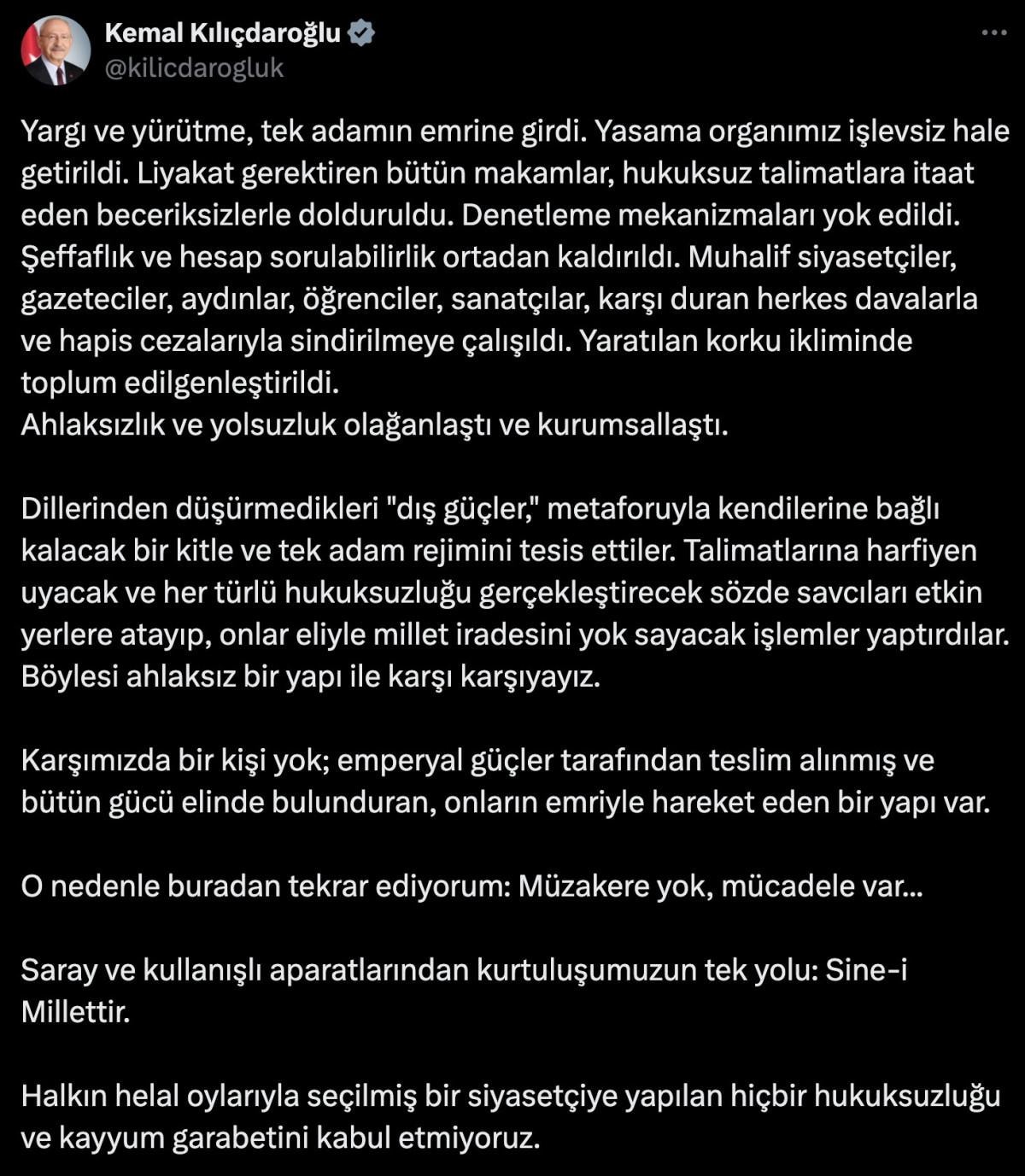 Kılıçdaroğlu, 'Sine-i Millet' çağrısı yaparak şu ifadeleri kullandı: