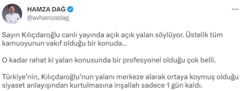 AK Parti Genel Başkan Yardımcısı Hamza Dağ, çok geçmeden Kemal Kılıçdaroğlu'nun iddiasını çürüttü.