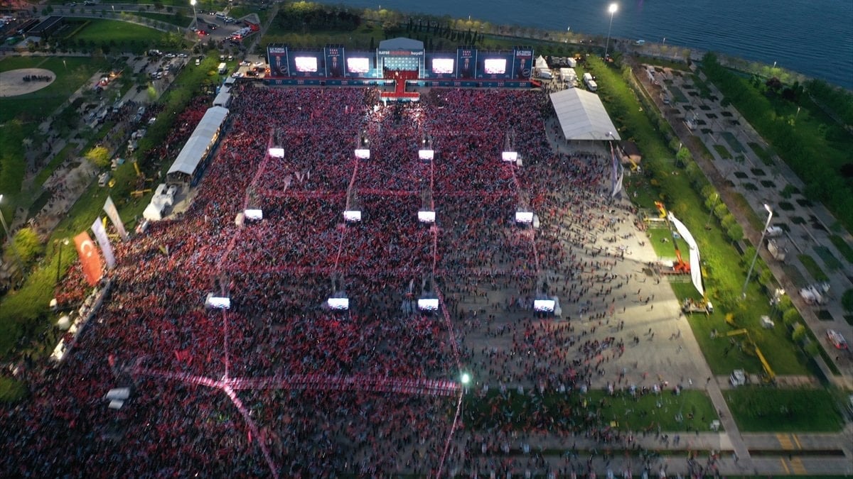 Kılıçdaroğlu'nun konuşması sırasında miting alanı ise dron kameralarına yansıdı. Alanın çoğu kısmının boş kaldığı görüldü.