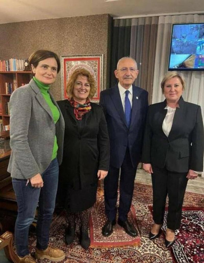 Ayakta olan Kılıçdaroğlu, yanına da CHP İstanbul İl Başkanı Canan Kaftancıoğlu ve Azade Ay’ı aldı.
