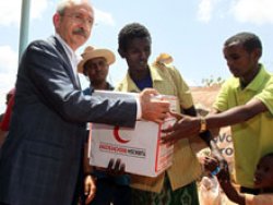 Somali-Kenya sınırında açlık ve kuraklıktan etkilenen Somalilerin yaşadığı Dadaab mülteci kampına giderek incelemelerde bulunan olan Kılıçdaroğlu, ihtiyaç sahiplerine yardım kolileri dağıttı.