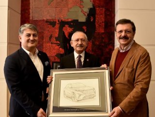 1 saat süren görüşmenin ardından açıklama yapılmazken, paylaşılan fotoğraflarda Kılıçdaroğlu'na yerli otomobilin çiziminin hediye edildiği görüldü.