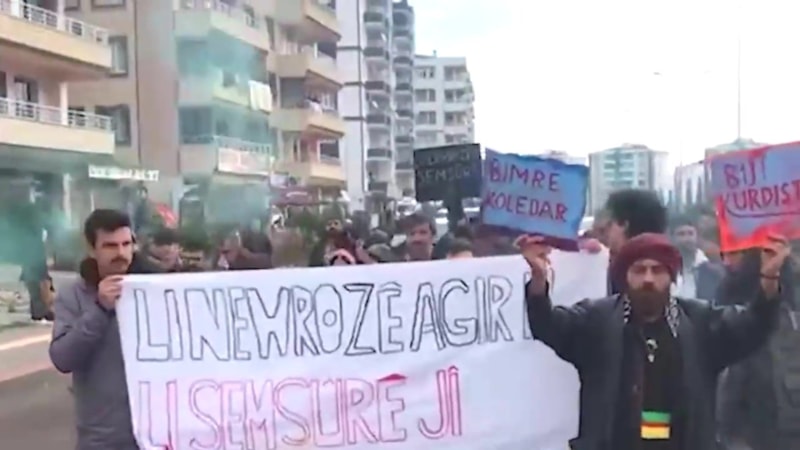 Diyarbakır'da düzenlenen kutlamalar için sıkı güvenlik tedbirleri alınırken, PKK sempatizanları Kürtçe sloganlar attı.