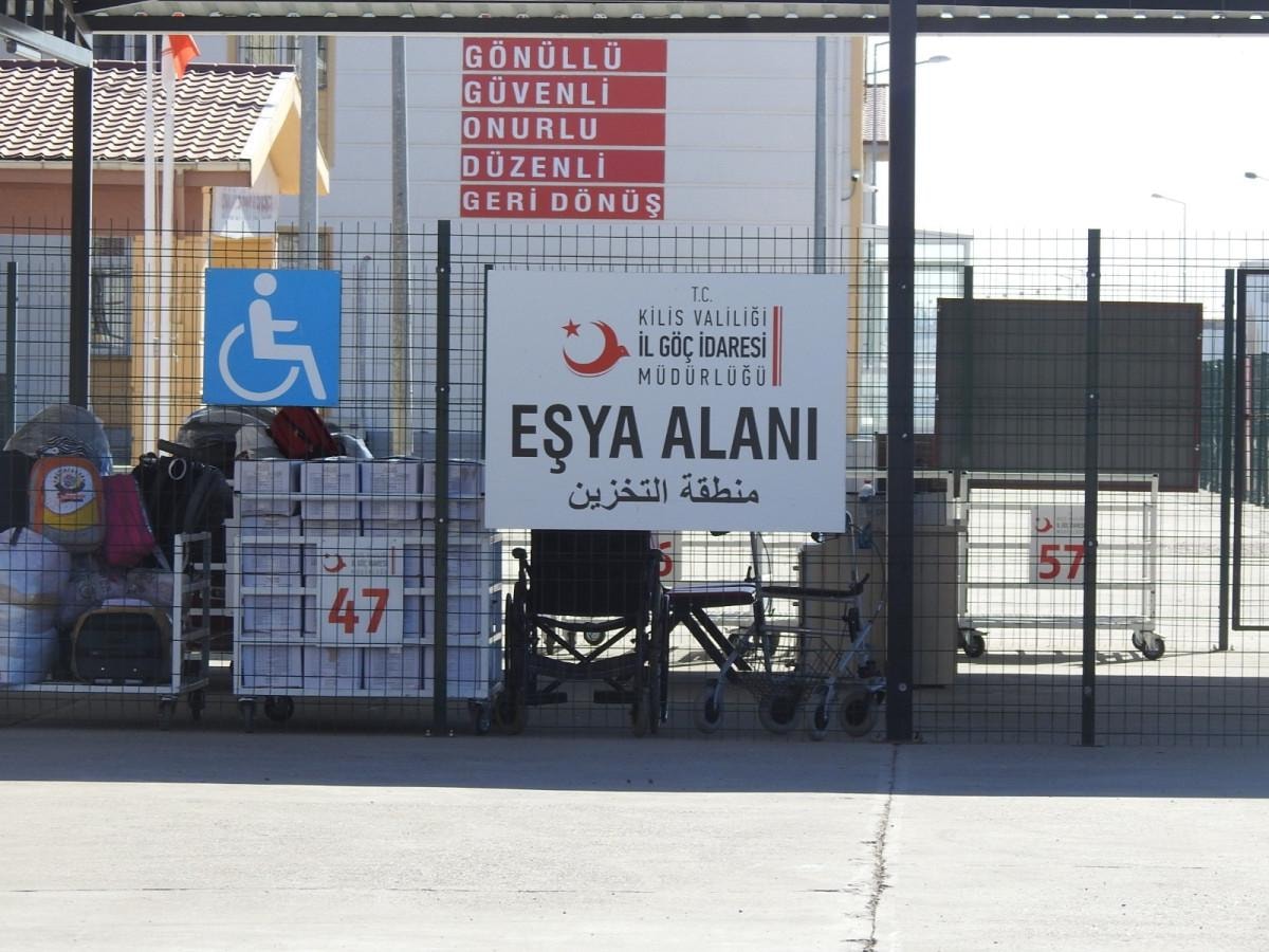 Kilis Öncüpınar Sınır Kapısı'nda Gönüllü Geri Dönüş Merkezi'nde işlemlerini tamamlayan Suriyeliler, yanlarına aldıkları eşyalarla ülkelerine geçişleri sürüyor.