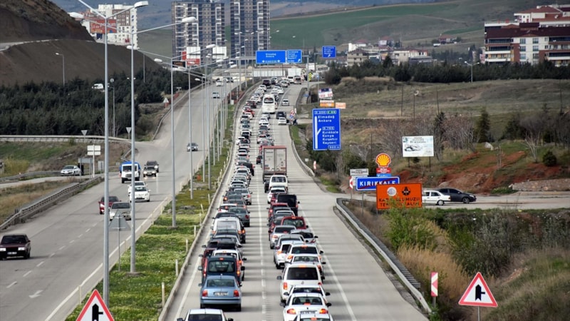Özellikle Kırıkkale-Ankara ve Kırıkkale-Samsun kara yollarında yaşanan yoğunluk nedeniyle kilometrelerce araç kuyruğu oluştu.