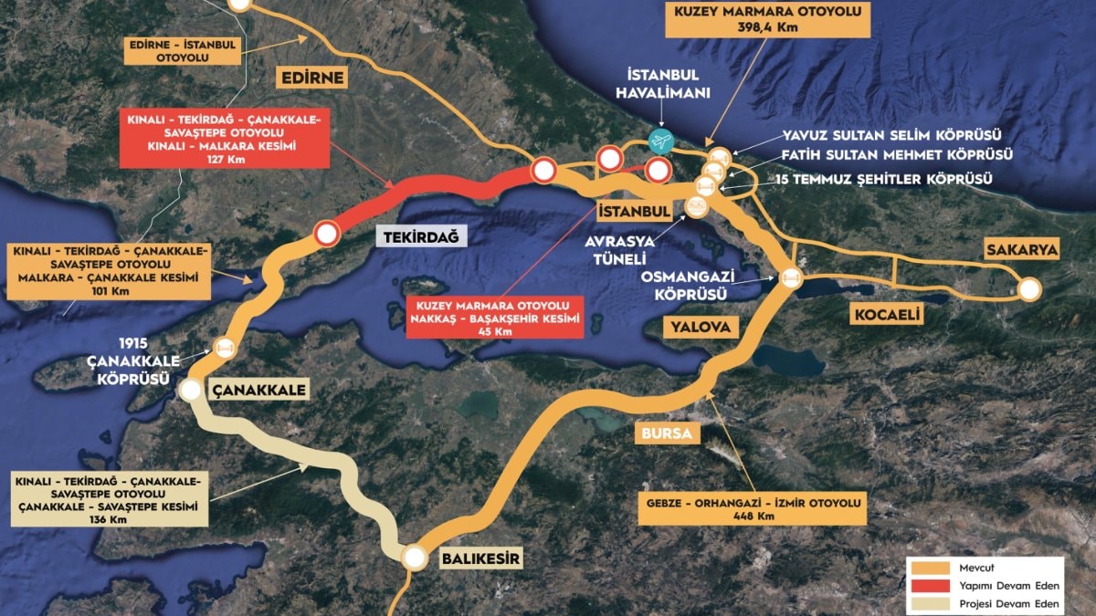 MARMARA DENİZİ ÇEVRESİNDE 1.255 KİLOMETRELİK OTOYOL AĞI PLANLANDI