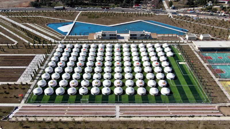 Kırgızistan'dan getirilen 108 kıl çadır, Kahramanmaraş'ta bir futbol sahasına kuruldu.