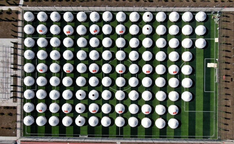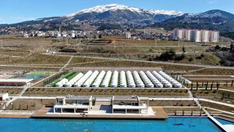 Kahramanmaraş Millet Bahçesi içerisindeki futbol sahasına kurulan çadırlar dron ile havadan görüntülendi.