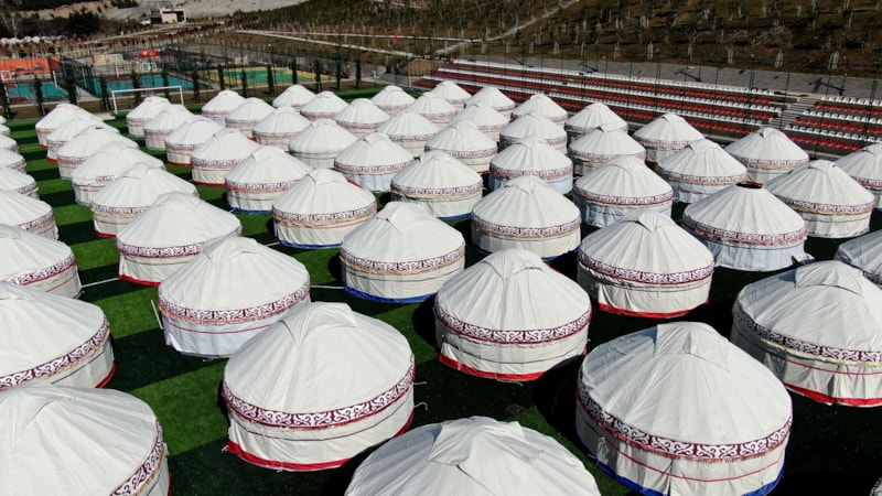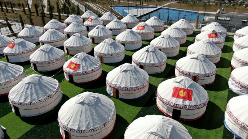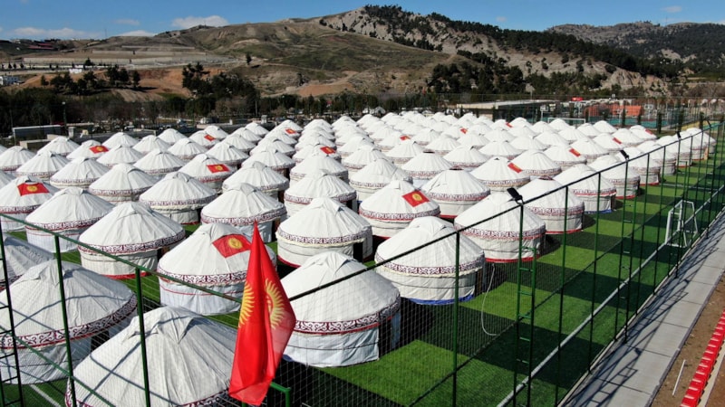 Kırgızistan Afet Bakanlığı tarafından, Kahramanmaraş merkezde barınma ihtiyacı olan depremzedelere yardımcı olunabilmek için 108 adet geleneksel kıl çadır getirildi.